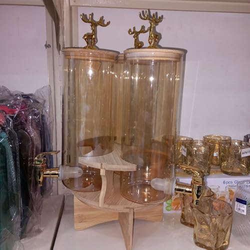 Generic - موزع مشروبات زجاجي أنيق ثلاثي الأقسام مع غطاء بتصميم غزال ذهبي وحامل خشبي بتصميم دائري مثالي للتجمعات
