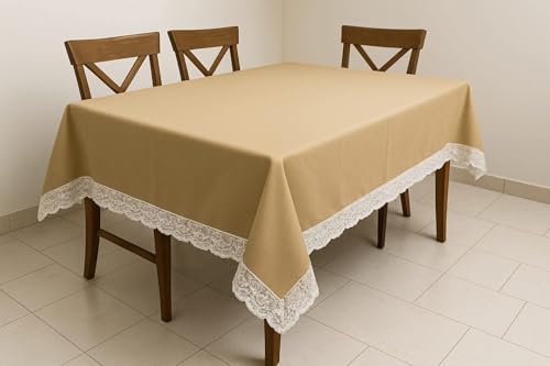 Generic - جيني مفرش طاولة مخملي انيق بحواف من الدانتيل، 150 × 210 سم (كافيه)