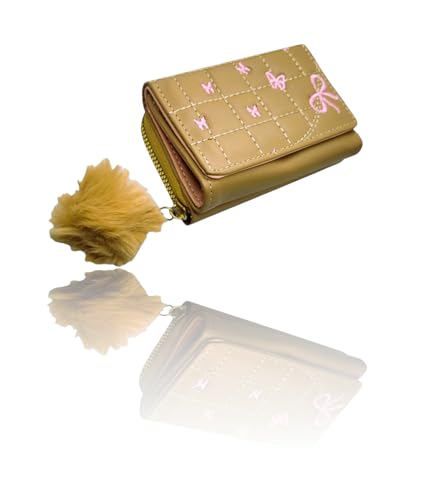 Generic - محفظة انيقة صغيرة لطيفة قابلة للطي بتصميم فراشة عالي الجودة 3 طيات بسعة عالية محافظ للعملات المعدنية حامل بطاقات للسيدات مقاومة للماء لحمل متعددة كريمي