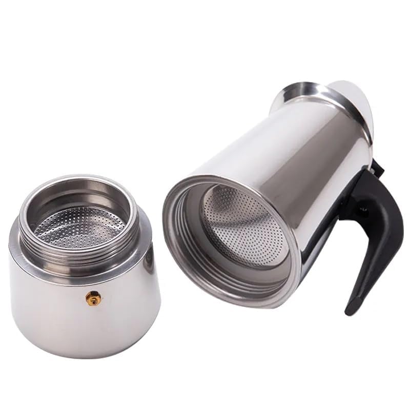 Generic - ماكينة تحضير قهوة اسبريسو عالية الجودة مصنوعة من الستانلس ستيل، وعاء موكا ايطالي - سعة كوبين - 100 مل، فضي