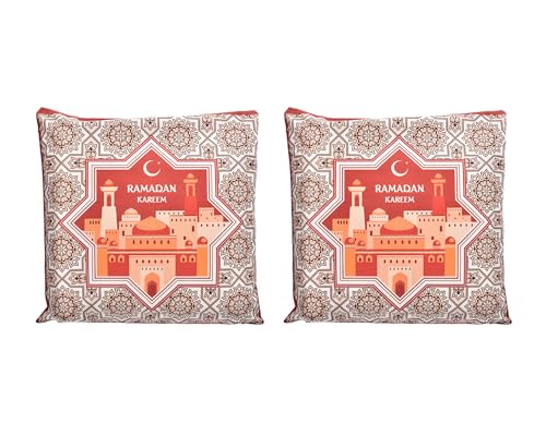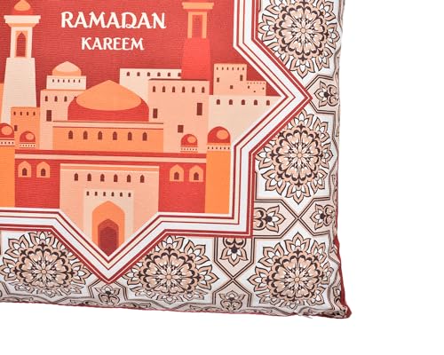 Generic - غطاء وسادة قماش كبير بتصميم مربع مطبوع بنمط مسجد وهلال مع سوستة للإغلاق لديكور المنزل في رمضان، طقم من قطعتين، متعدد الألوان