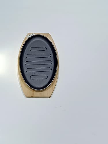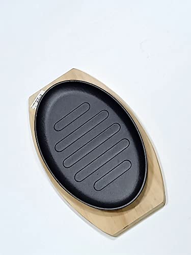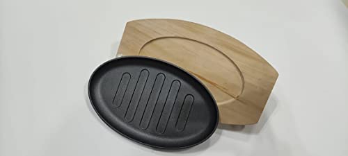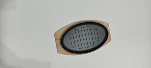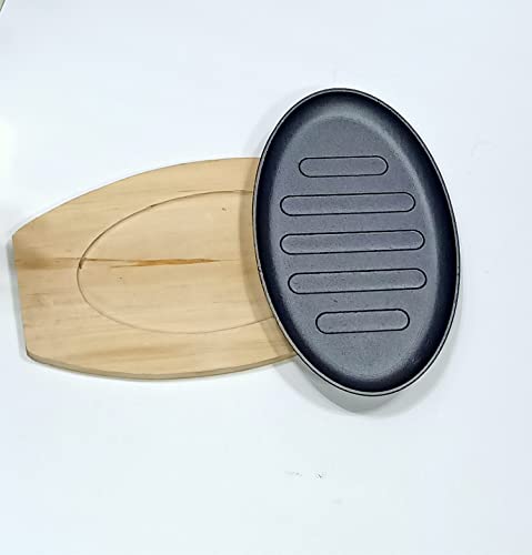 Generic - صينية فاهيتا بقاعدة خشبية من الحديد المصبوب، رمادي