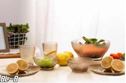 Generic - طقم سفرة زجاجي من فاميه، 10 قطع، لون بني كهرماني، 4 مجات شوربة، 4 بولات وطبقين عميقين