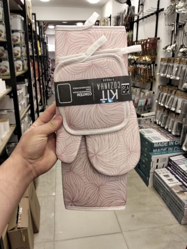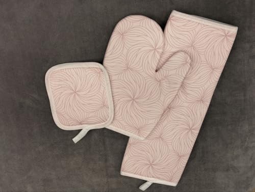 Generic - مجموعة تجفيف فاتو للمطبخ بنقشة أدوات مائدة مصنوعة من مادة سريعة الجفاف تتضمن جوانتي وحامل صينية ومفرش تجفيف، 3 قطع (وردي)