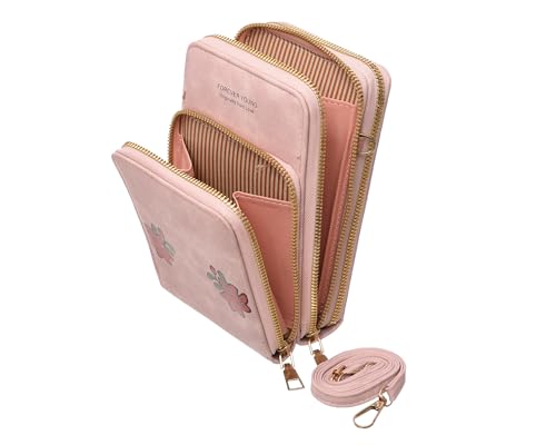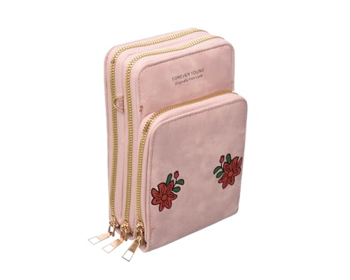 Generic - جيني شنطة كتف انيقة مستطيلة من الجلد الصناعي بطبعة زهور تحتوي على ثلاثة جيوب بسوستة مع لبطاقات العمل وحزام متضمن مناسبة للنساء - بينك متعدد الألوان