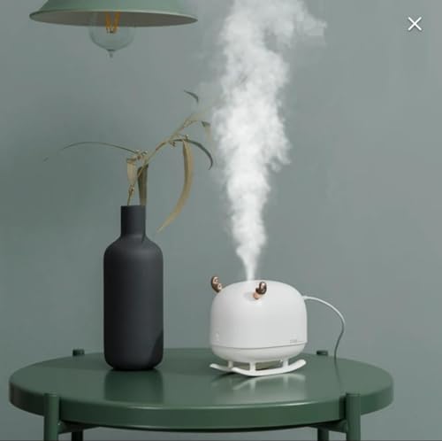 - التصميم: مرطب هواء صغير بشكل غزال رائع باللون الأبيض النقي مع تفاصيل قرون ساحرة وتصميم مدمج