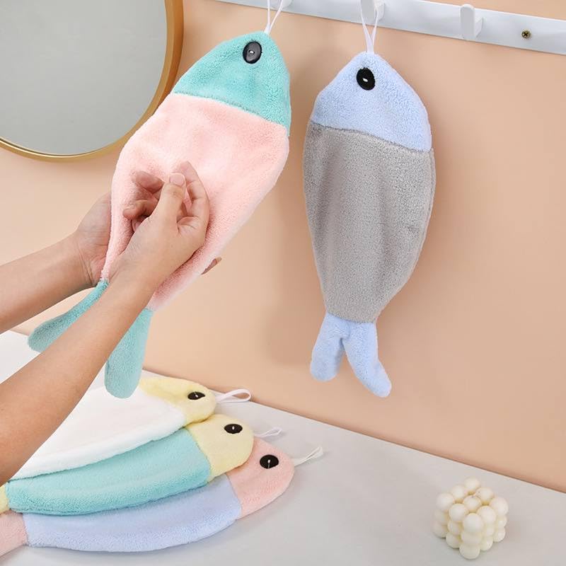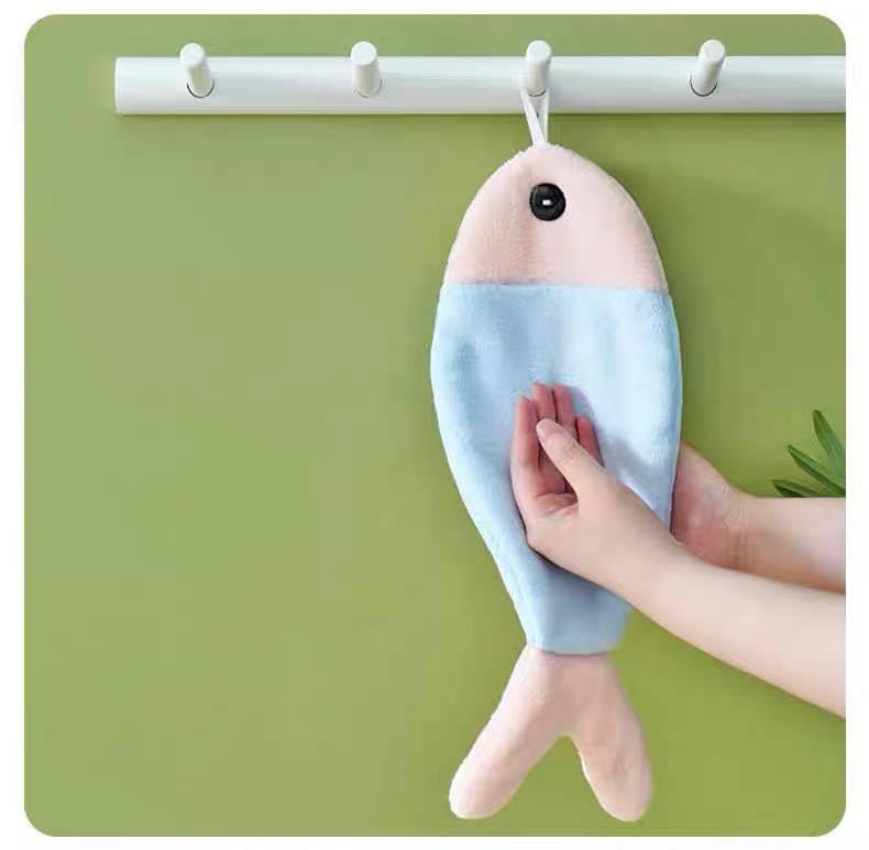 Generic - جيني منشفة يد للمطبخ على شكل سمكة، قماش الموهير مزدوج الجوانب، منشفة تجفيف مزخرفة، ازرق وزهري. اس ايه