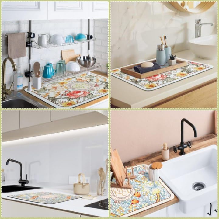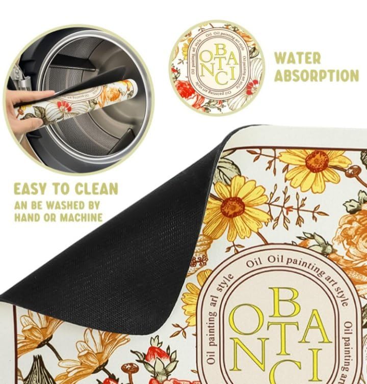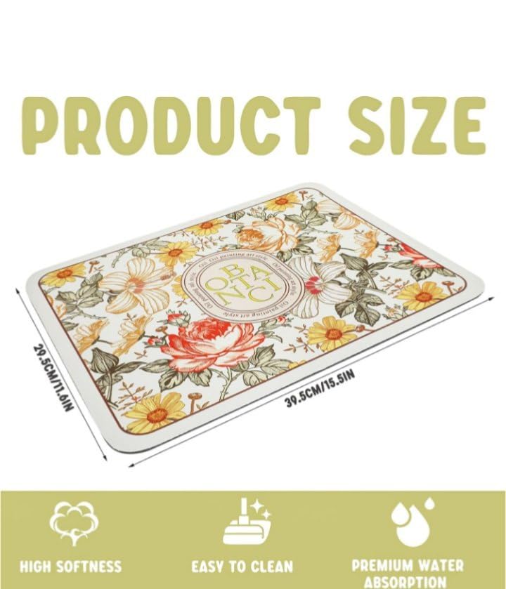 Generic - سجادة مطبخ أرضية بتصميم زهور ماصة غير قابلة للانزلاق، 60 × 60 سم، قابلة للغسل في الغسالة