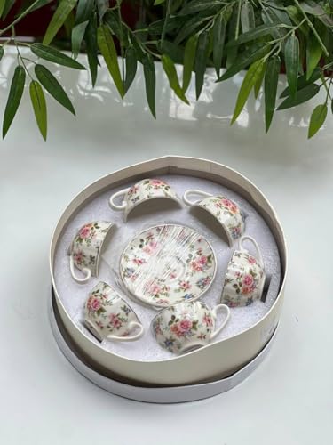 - تصميم أنيق: طقم شاي / قهوة كلاسيكي من البورسلين الأبيض يتميز بنمط زهور وردية وردية رقيقة، مثالي للترفيه الرسمي والاستخدام اليومي