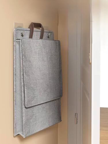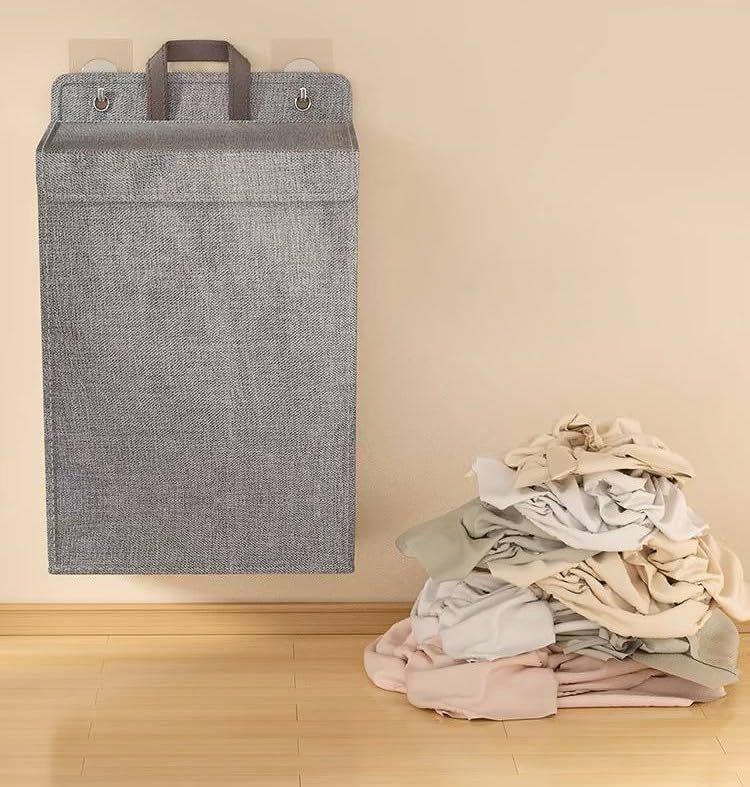 Generic - Generic Foldable Laundry Basket with Lid and Handles, Grey, 48cm High, Hanging Storage Organizer, .sa