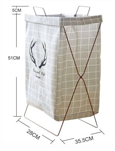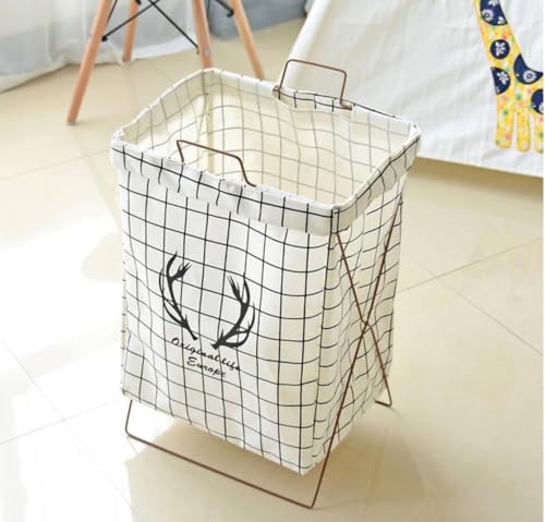 Generic - سبت غسيل قابل للطي مع حامل معدني، نمط شبكي بتصميم قرن، أبيض وأسود
