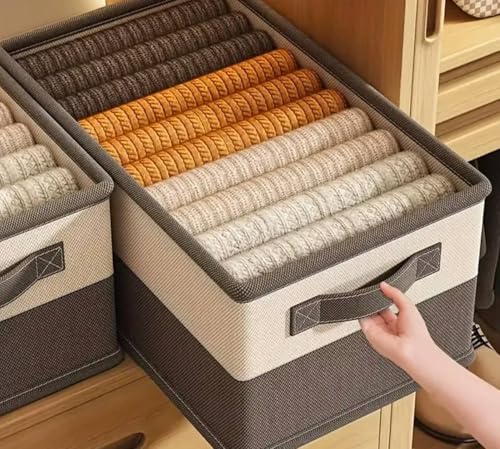 Generic - صندوق تخزين منظم قابل للطي مع مقابض، 40 × 30 × 25 سم، مقسم أدراج متعدد الأقسام، بيج ورمادي