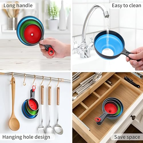- يُعد التصميم القابل للطي للقمع تغييرًا جذريًا لأولئك الذين لديهم مساحة محدودة في المطبخ. يمكن طيه بسهولة عند عدم استخدامه، مما يسمح بتخزين فعال في الأدراج أو الخزائن دون شغل مساحة كبيرة.