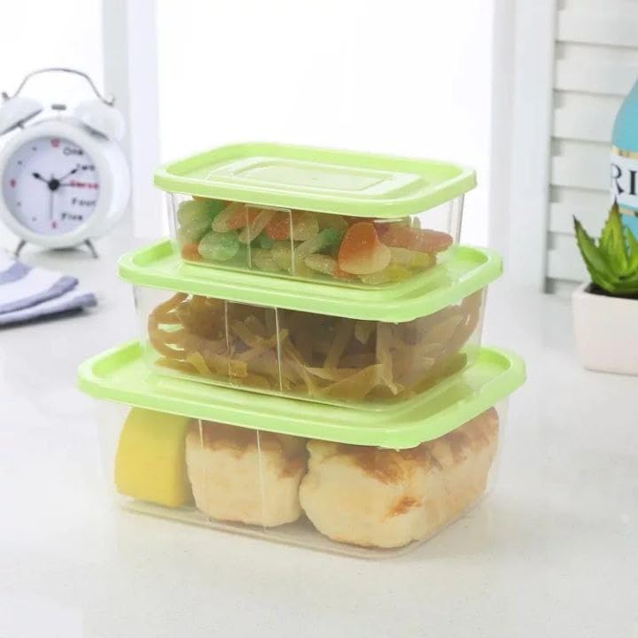 Generic - مجموعة علب تخزين الطعام، قابلة للتكديس، شفافة، 1000 مل/1500 مل/2500 مل، آمنة للاستخدام في الميكروويف والفريزر وغسالة الأطباق من 3 قطع، غطاء أخضر