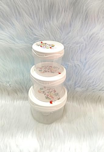 Generic - جيني طقم علب تخزين الطعام مع اغطية دوارة، 3 قطع (800 مل، 500 مل، 280 مل)، شفاف وابيض .A2