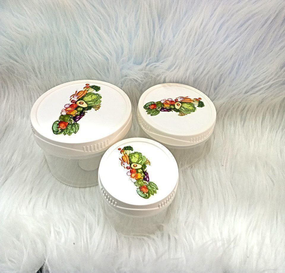 - تصميم شفاف: حاويات شفافة ذات أغطية بيضاء تسمح بالتعرف السريع على المحتويات ومراقبة الكمية المتبقية