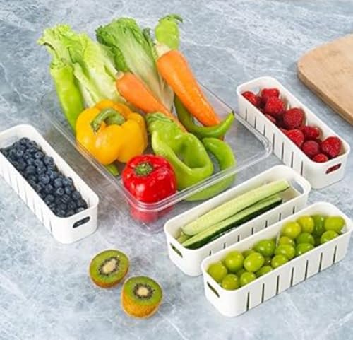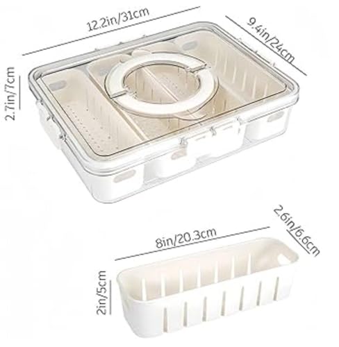 - تصميم متعدد الاستخدامات: حاوية تخزين طعام متعددة الأقسام مع غطاء شفاف مثالية لتنظيم الفواكه والخضروات والوجبات الخفيفة في ثلاجتك