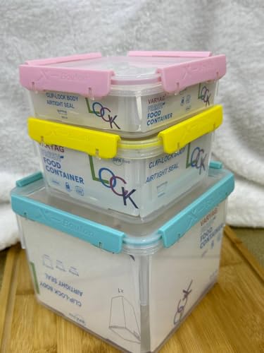 Generic - عبوات تخزين طعام من البلاستيك الخالي من مادة بيسفينول أ، تأتي في طقم من ثلاث قطع بأحجام (3000، 1000، 850 مل)، مزودة بغطاء مُحكم الإغلاق بقفل بمشبك، وهي آمنة للاستخدام في الميكروويف وغسالة الأطباق