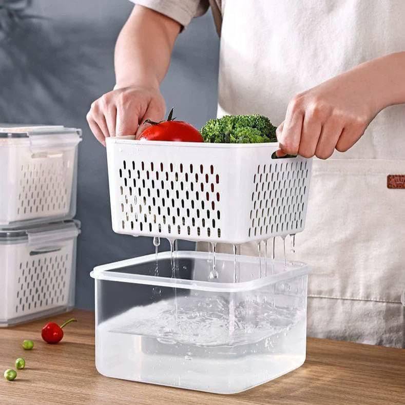 - تصميم متعدد الاستخدامات: مجموعة علب تخزين قابلة للتكديس مع سلال مصفاة مدمجة، مثالية لتنظيم الفواكه والخضروات في ثلاجتك، 4 قطع