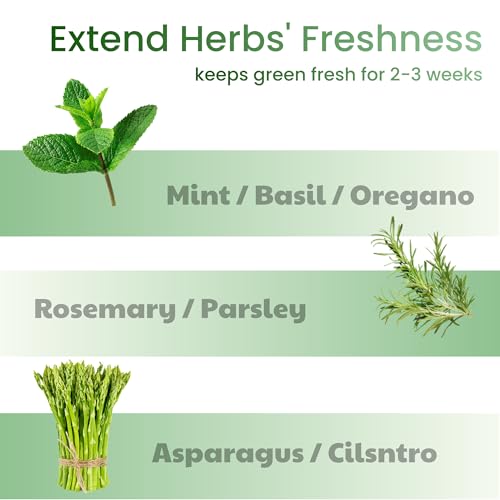FOURMOON - حافظة اعشاب للثلاجة من فورمون، حافظة اعشاب طازجة وخضروات للثلاجة - حاوية تخزين اكريليك شفافة خالية من BPA امنة للغسل في غسالة الصحون - تحافظ على الخضروات طازجة لمدة 2-3 اسابيع
