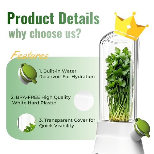 - انتعاش ثلاثي، حتى 3 أسابيع: ترطيب وحفظ: اغمر جذوع الأعشاب في الماء للحصول على ترطيب مثالي، محاكاة ظروف النمو الطبيعية. التغييرات المنتظمة للمياه (كل 3-5 أيام) تحافظ على الأعشاب مثل الريحان والكزبرة والهليون طازجة لمدة تصل إلى 3 أسابيع - مما يزيد من عمرها الافتراضي ثلاث مرات مقارنة بتخزين الثلاجة التقليدي