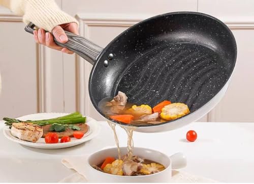 Generic - طاسة قلي مع مقبض، طاسة شواء غير لاصقة للطبخ والتقديم، أسود روم (24 سم)