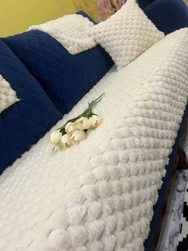 Generic - جيني طقم شراشف من الفرو لغرفة المعيشة، مجموعة انيقة من 10 قطع مع اريكة كبيرة وكنبة صغيرة وكرسيين و6 مفارش مفارش، لون كريمي وكحلي (اوف وايت)