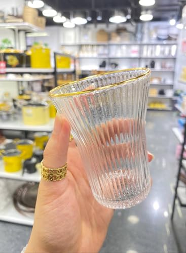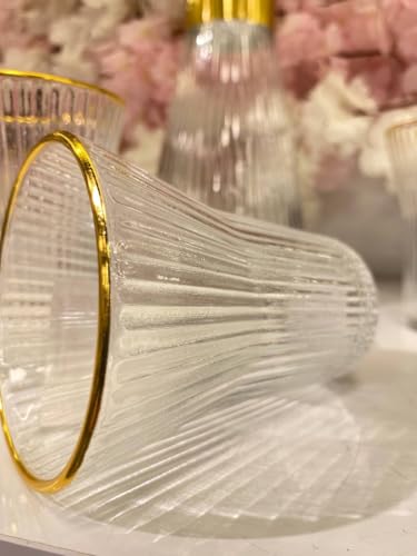- تصميم أنيق: طقم كاسات زجاج يتسم بنقاء الكريستال، يتميز بنمط مضلع وتفاصيل فخمة بحواف ذهبية لتجربة تناول طعام راقية.