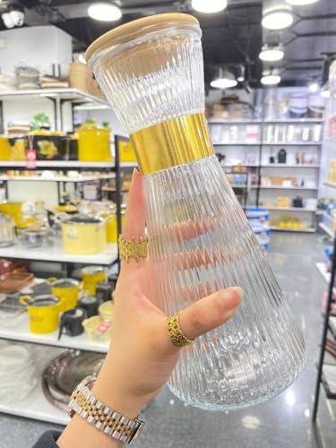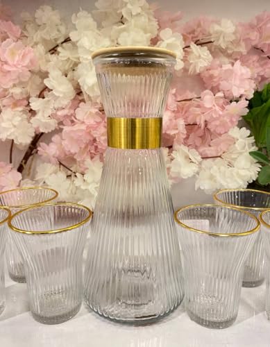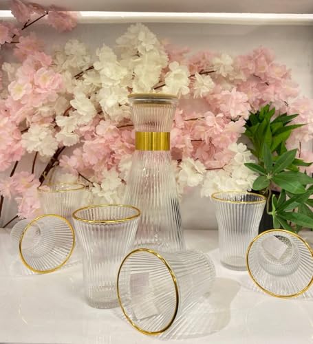 Generic - أدوات شرب أنيقة، طقم من 5 قطع، زجاجة واحدة و4 أكواب بحواف ذهبية