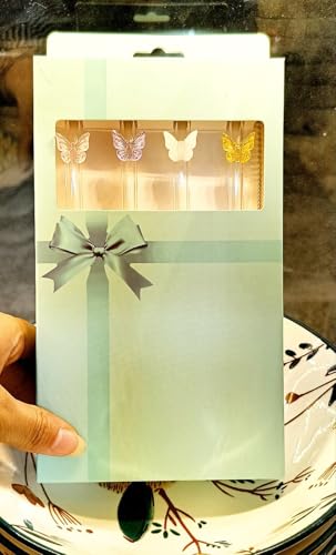- تصميم مميز: مجموعة من 4 شفاطات زجاج أنيقة تتميز بزخارف فراشة ملونة بألوان بينك وأصفر وأزرق وأخضر وأرجواني