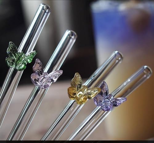- تقديم أنيق: حوّل المشروبات العادية إلى مشروبات على طراز المقهى مع هذه الشفاطات الزجاج المزينة بالفراشات بشكل جمالي