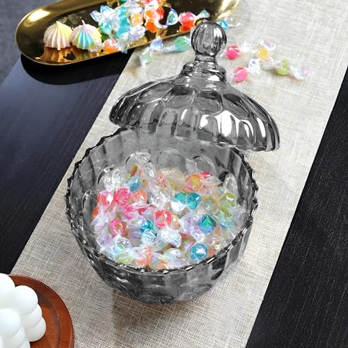 Generic - وعاء حلوى زجاجي بغطاء مصمم للحلويات والوجبات الخفيفة عملي مع غطاء كريستالي مزخرف لتقديم الهدايا والتخزين بشكل أنيق شفاف