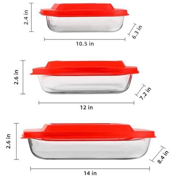Generic - جيني طقم كسرولة زجاجية مع غطاء، شكل مستطيل، 3 قطع، اواني خبز مقاومة للحرارة، 1 لتر، 1.6 لتر، 2.2 لتر