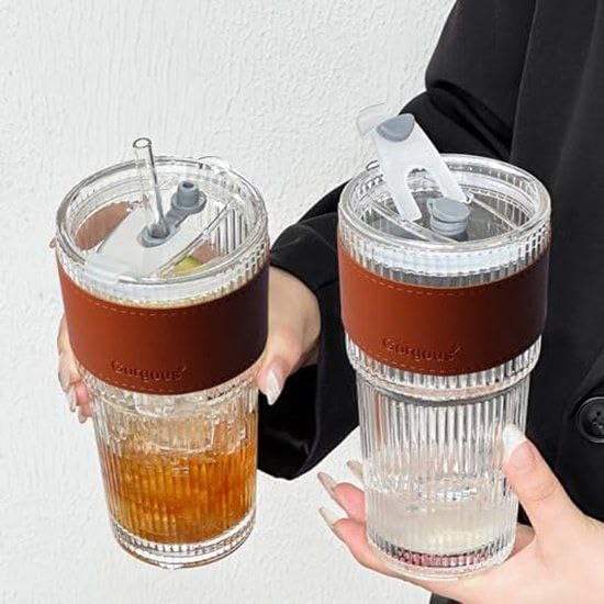 - مواد فاخرة: مصنوع من زجاج بايركس المتين مع غطاء جلدي أنيق يوفر قبضة مريحة ويحمي يديك من المشروبات الساخنة أو الباردة