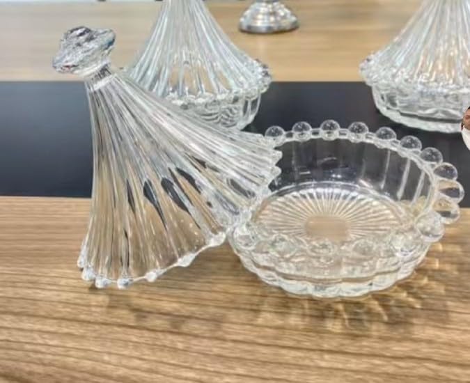 Generic - وعاء زجاجي للتمر بغطاء، برطمان تخزين زجاجي كريستالي مزخرف، قطعة ديكور منزلية أنيقة. A2