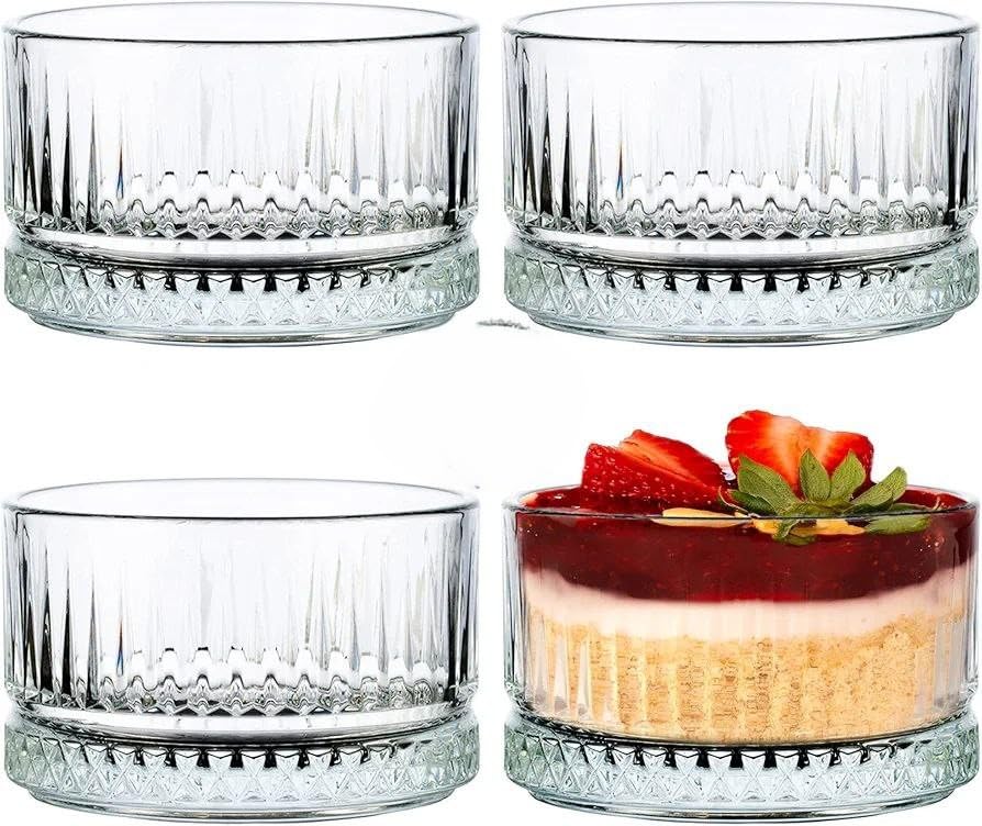 Generic - جيني طقم اوعية حلوى زجاجية بتصميم دائري متعدد الاغراض للحلويات والوجبات الخفيفة والسلطات، سعة 250 مل، 4 قطع