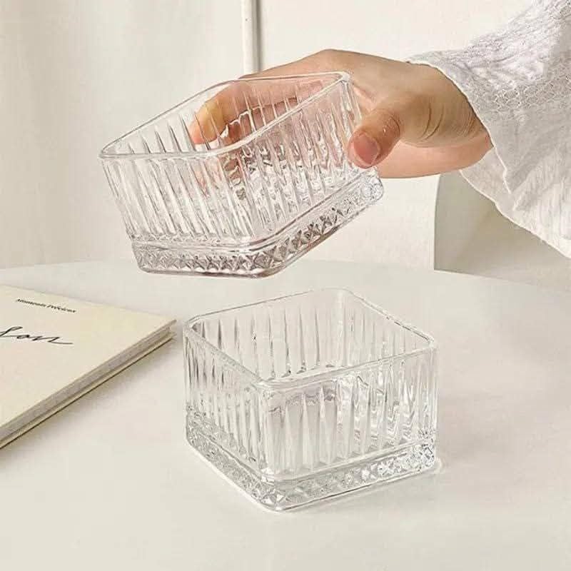 - هيكل زجاجي فاخر: مجموعة من 4 أوعية حلوى مربعة الشكل مصنوعة من زجاج شفاف عالي الجودة مع تصميم أنيق مضلع يعزز الجاذبية البصرية