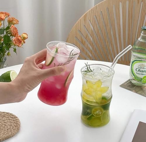 Generic - جيني مجموعة مشروبات زجاجية، حاويات مشروبات شفافة مع الثلج، عرض زهور مزخرفة