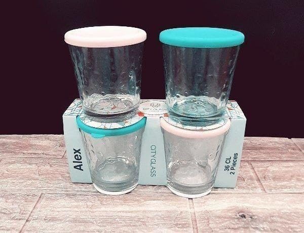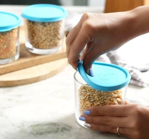 Generic - مجموعة علب تخزين طعام من الزجاج مع أغطية من السيليكون بلون أزرق لتنظيم المطبخ، مجموعة علب سيتي 2 في 1 سعة 360 مل من 2 قطعة، A2