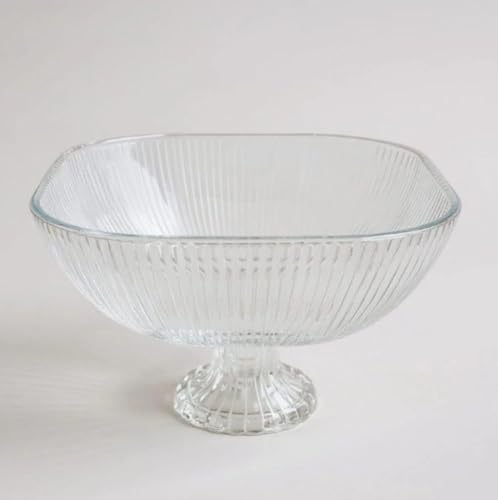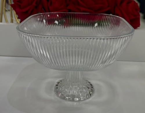 - تصميم أنيق: يتميز وعاء التقديم ذو القدمين بنمط مربع مضلع كلاسيكي على زجاج شفاف مع قاعدة مزخرفة تضيف الرقي إلى أي طاولة