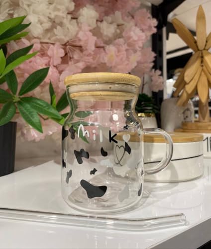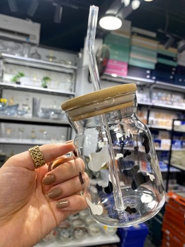 Generic - مج للقهوة المثلجة من الزجاج مع غطاء خشبي وشفاطة