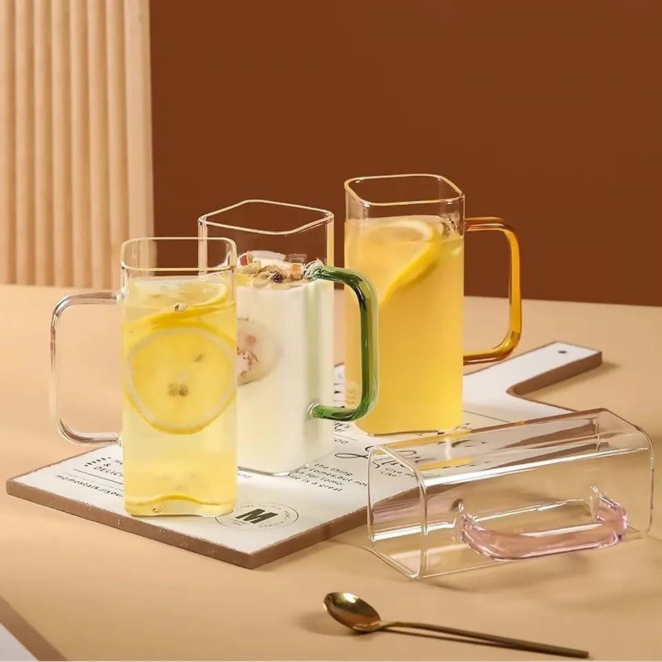 Generic - كوب زجاجي للعصير والقهوة المثلجة بمقبض ملون، 350 مل