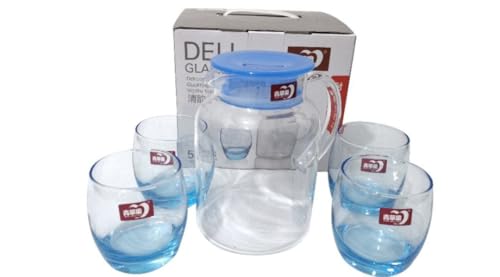 Generic - طقم شفشق وأكواب زجاجية بدون علامة تجارية، شفشق سعة 1.5 لتر مع 4 كؤوس عصير، بلون أزرق خفيف