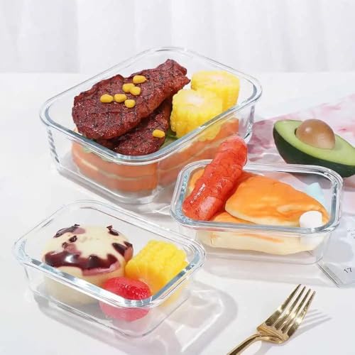 Generic - علب تخزين طعام زجاجية مستطيلة، مجموعة من 3 قطع، 375 مل، 600 مل، 880 مل. اتش جي