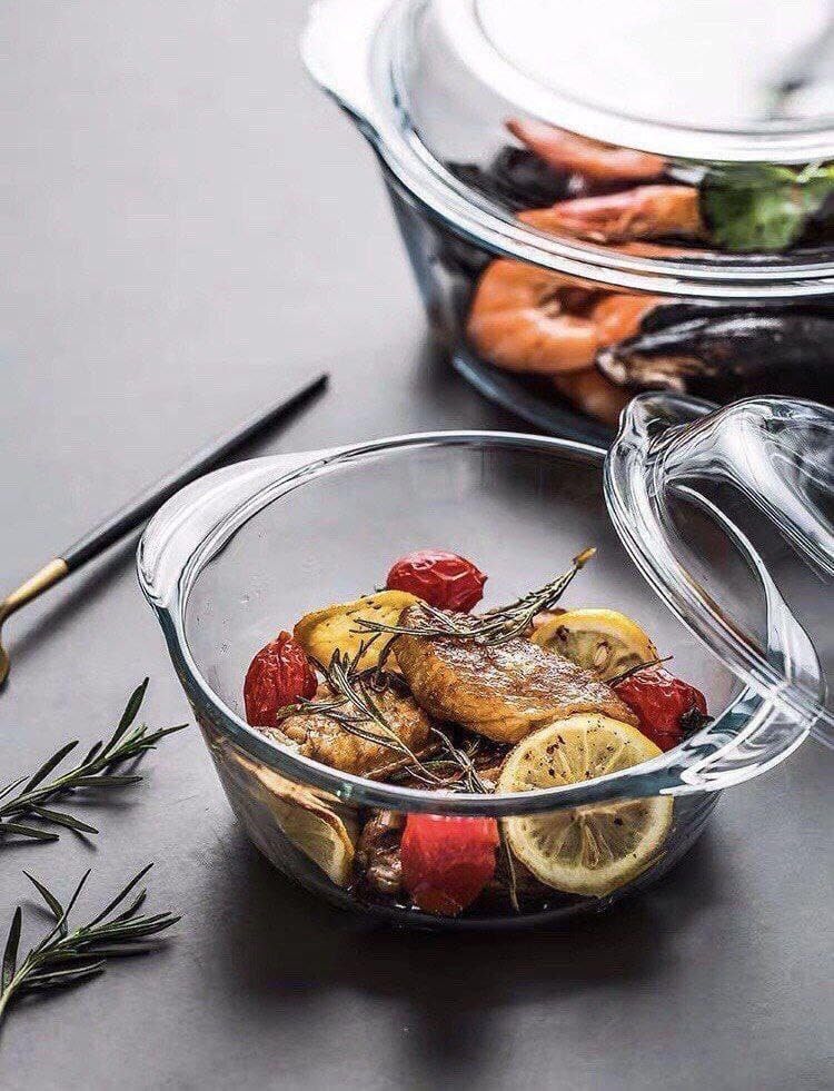 - محتويات المجموعة: طبقان زجاجيان دائريان، كل منهما كامل مع أغطية زجاجية محكمة الغلق لتخزين الطعام بشكل محكم.