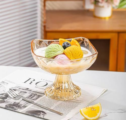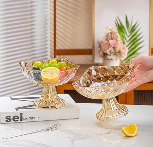- تصميم أنيق: وعاء زجاجي شفاف مع جذع مضلع مزخرف يضيف لمسة راقية إلى إعداد طاولتك، مثالي لتقديم التمر والحلويات والشوكولاتة والحلويات