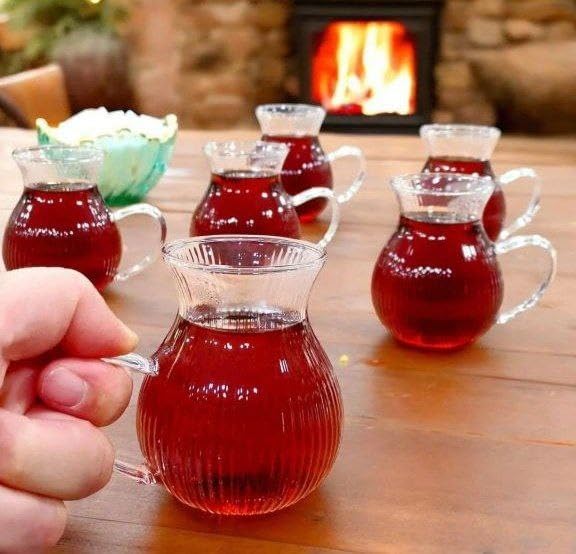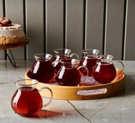 - مجموعة متعددة الاستخدامات: طقم إبريق زجاجي كامل مكون من 6 قطع مثالي لتقديم الشاي الساخن والقهوة والمشروبات الباردة والعصائر الطازجة بتصميم تركي أنيق