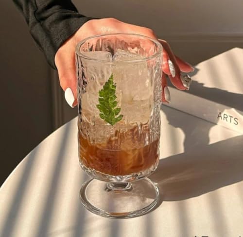Generic - جيني طقم اكواب زجاجية مع حامل، 6 قطع، سعة 290 مل، للعصير والقهوة المثلجة والحلوى والكوكتيلات