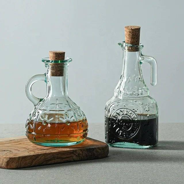 - يتضمن الطقم زجاجي يتألف من 4 قطع، منها 2 زجاجة كبيرة للزيت والخل.