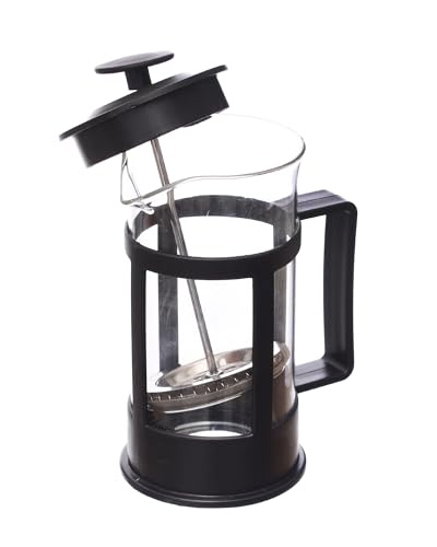 Spaceshoop - مكبس قهوة زجاج صغير بتصميم عصري مع مقبض بلاستيك وسهل الاستخدام 350 مل - لون أسود وأجزاء شفافة